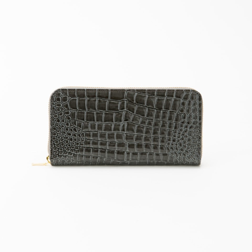 ハンドバッグに使用している革で贅沢に仕上げた財布でプレゼントにもぴったりです。シンプルなデザインながら各所にヘリ返しを加えることでディテールは繊細でエレガントに。ゴージャスなファスナーはちょっとしたアクセントに。小銭入れ、収納スペースが4ヶ所。背ファスナーにICカードを入れるなど使い方は様々。カードを14枚ほど収納できます。
