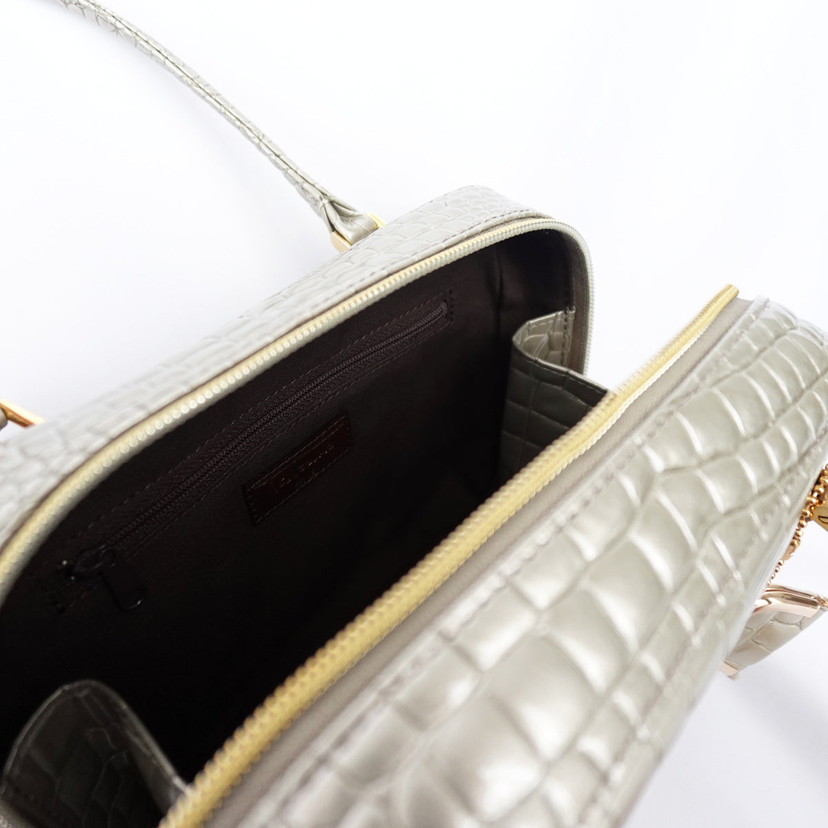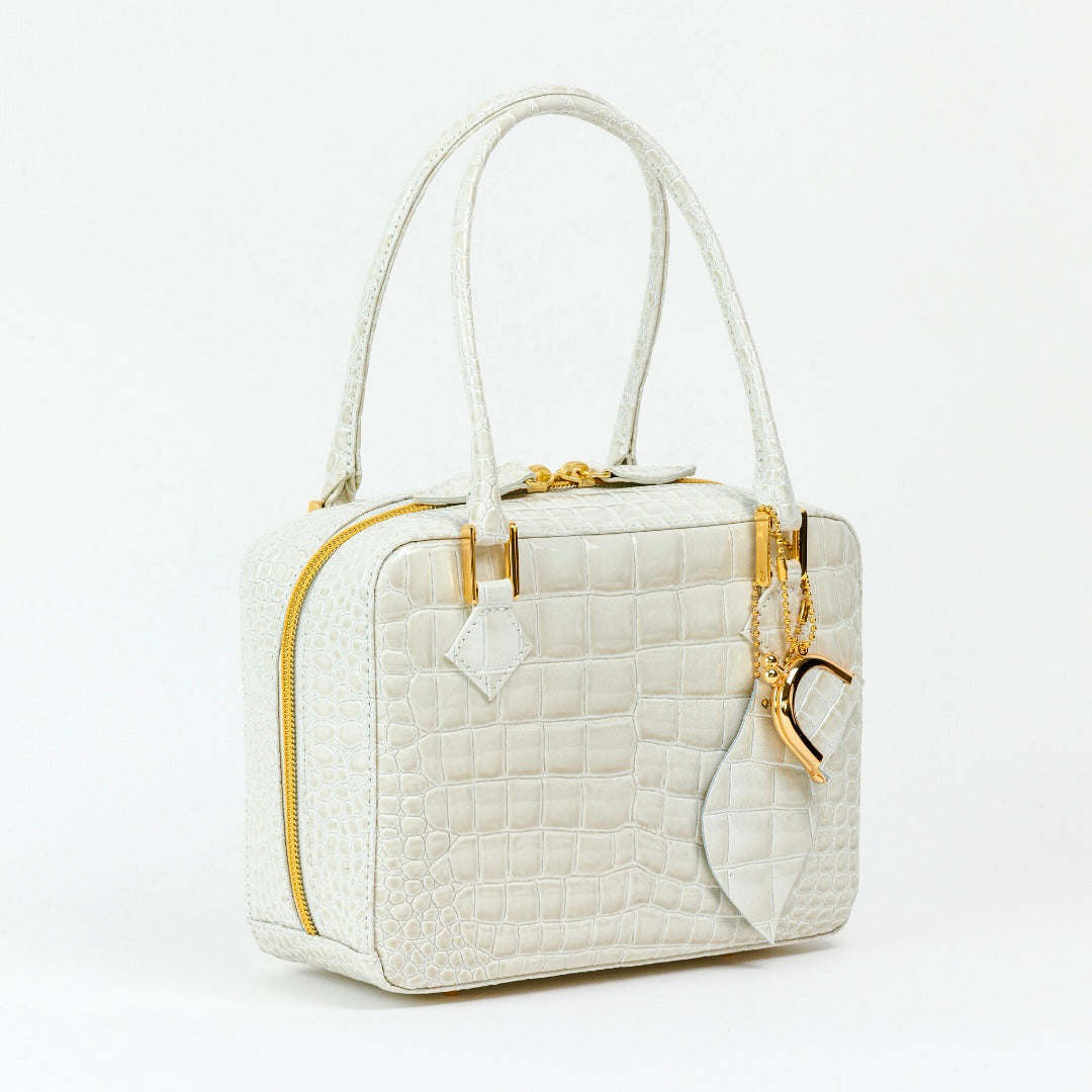 華奢な持ち手、艶やかな存在感がポイントのミニバッグです。