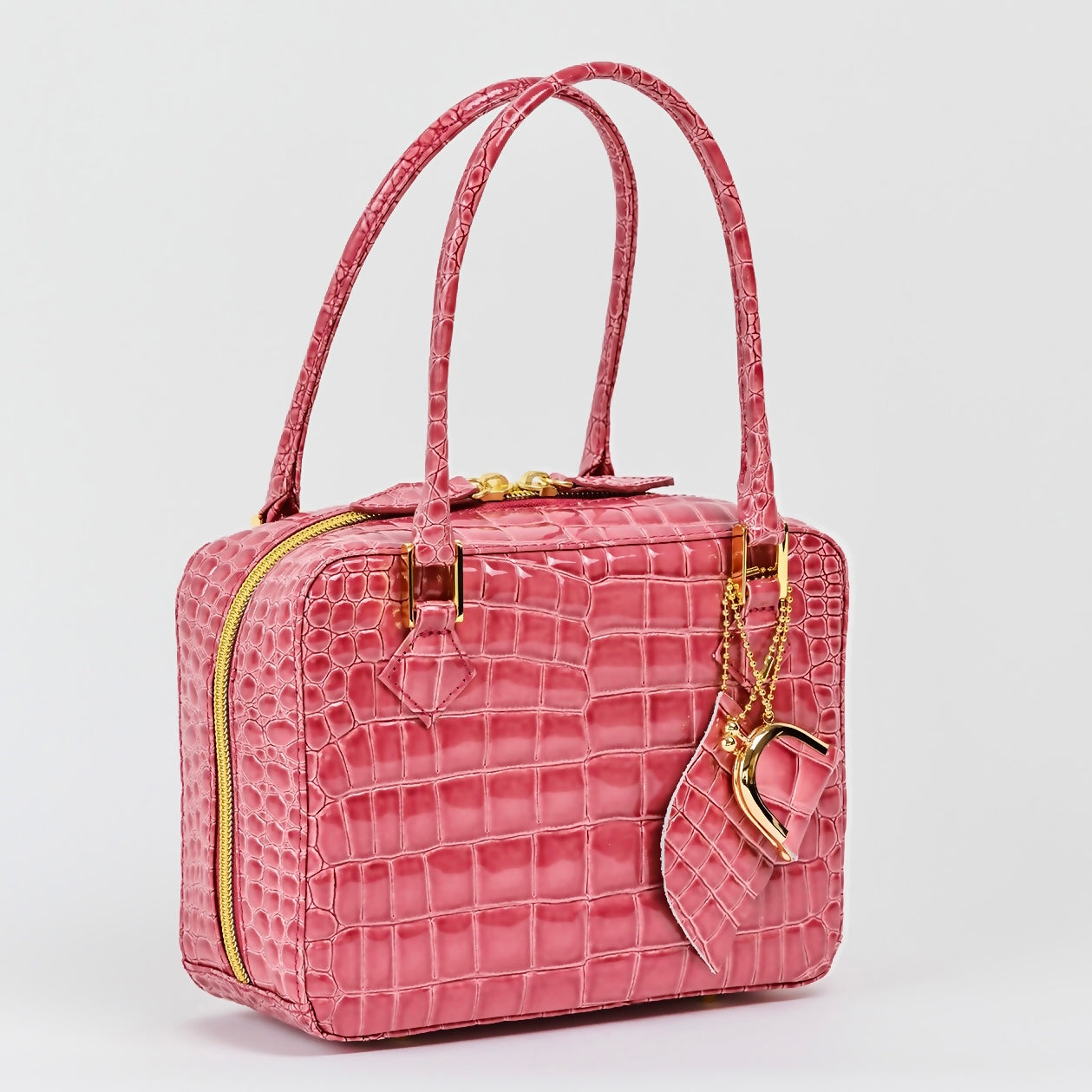 華奢な持ち手、艶やかな存在感がポイントのミニバッグです。