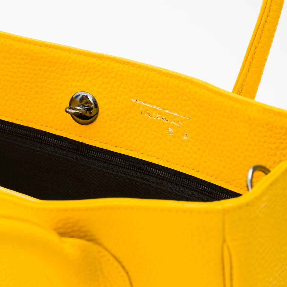 創業から55年以上アップデートを繰り返し、累計15,000個以上販売されてきた人気アイテムです。バッグを持つ方をエレガントに彩り、サポートするため多くの工夫を施して参りました。各所に丁寧に漉いた革の断面を折りたたんで縫い込む、ヘリ返しの技術を用い、軽さと耐久性を両立しソフトな手触りを実現。マチを独立して裁断・縫製することでお荷物を入れてもシルエットは保たれ、型崩れしません。口元に引っ掛け金具は、重いものを入れても開かず、倒してしまっても安心です。中仕切りは、取り外してクラッチバッグとして。大きな荷物などを入れる際には端に付け替えられます。オン・オフどの様なシーンでもご利用いただけるトートバッグです。