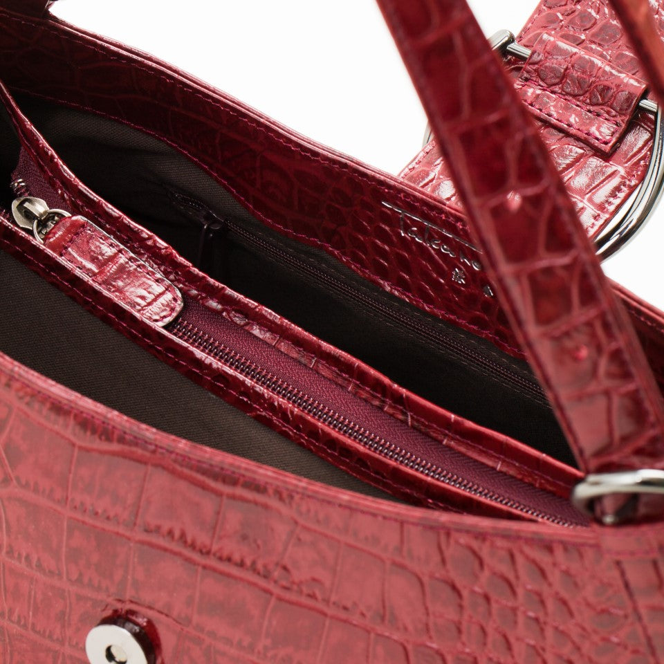 牛革ポロサススモールクロコの型押し 上品なアンチック仕上げ。最上級のマットレザーです。 肉厚な革にリアルクロコの型をギュッと押し、しっかりとした凹凸を出しています。 最大のポイントは職人さんによる「頭ハリ」という手塗りの作業で、艶のあるアンティーク風のカラーが生まれます。 経年変化に強い特殊な加工を施しているため、傷に強く、はっ水性があり、日常使いにも適しています。