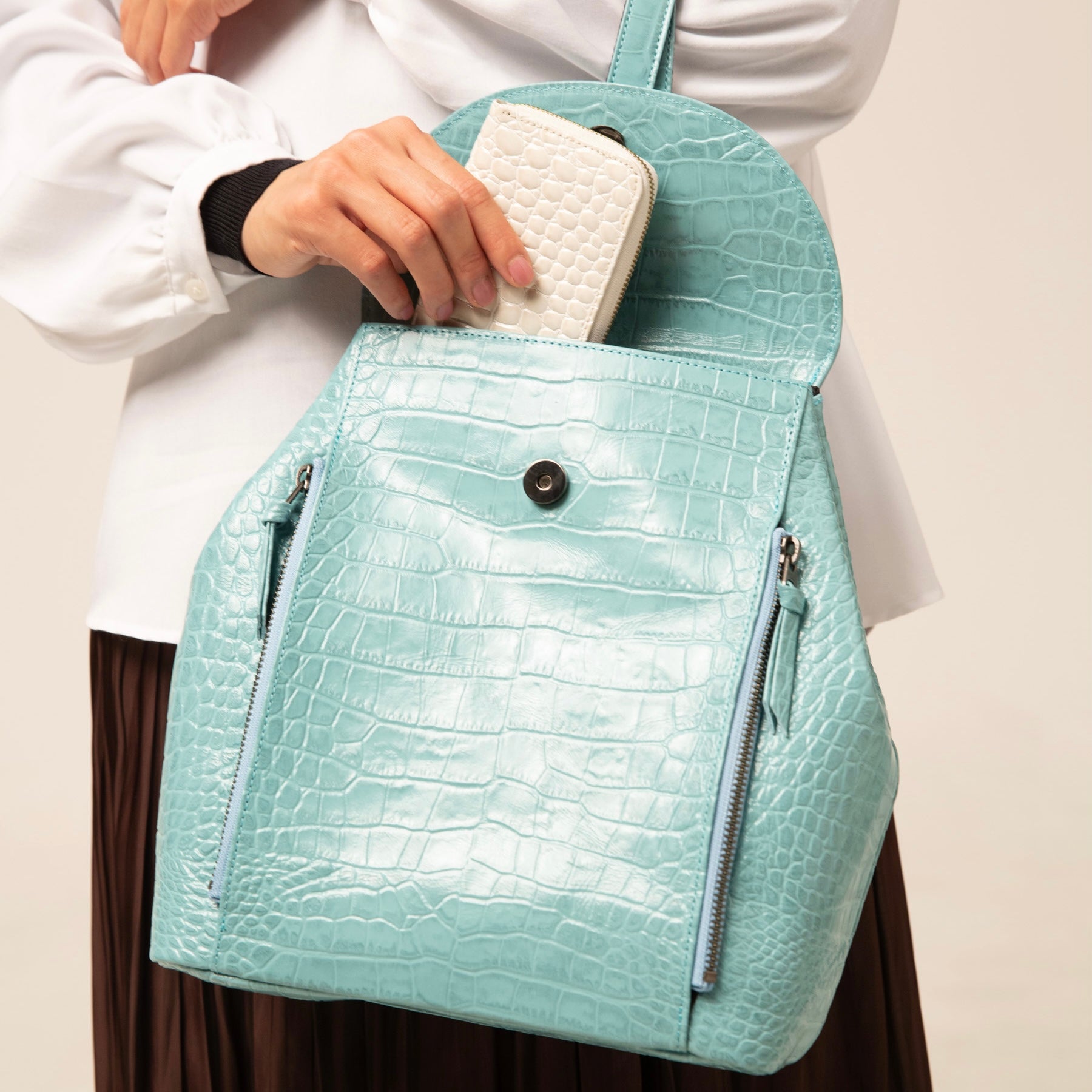 牛革ポロサスクロコの型押し。上品なアンチック仕上げ 最上級のマットレザーです。 最大のポイントは職人さんによる「頭貼り」という手塗りの作業で、艶のあるアンティーク風のカラーが生まれます。経年変化に強い特殊な加工を施しているため、傷に強く、はっ水性があり、日常使いにも適しています。