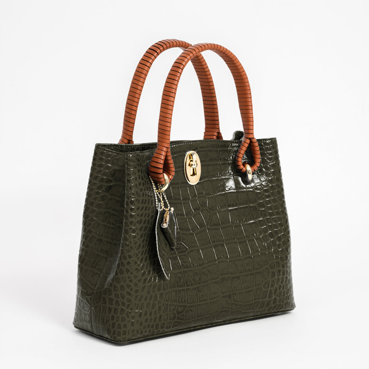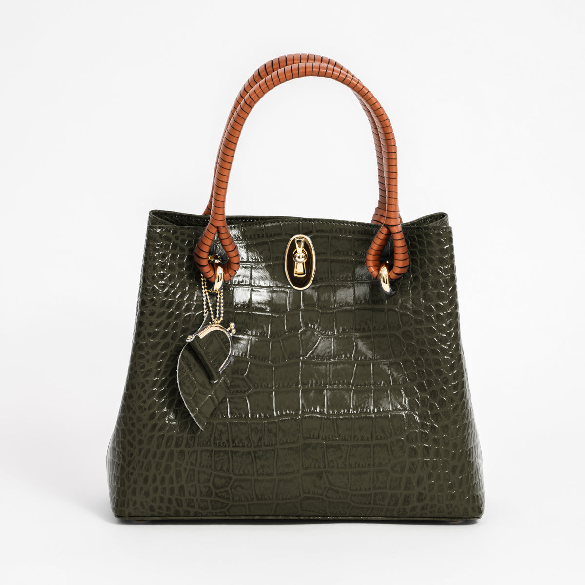 鎌倉高野の巻き手バッグ2 マットクロコ型押し カーキは、日本の職人による手作り。