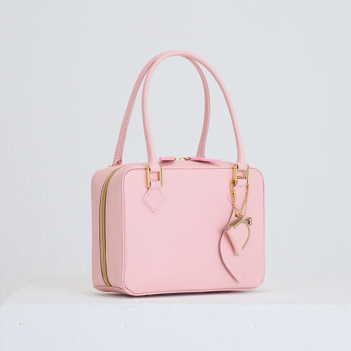 牛革に細かい型押し加工を施した素材。 明るい発色と柔らかい風合いに高級感があり、どのようなシーンでも上品な印象に。 ハリ感がありかための手触りのため、見た目の美しさだけでなく型崩れしにくく安心して日常使いできる機能性も兼ね備えています。