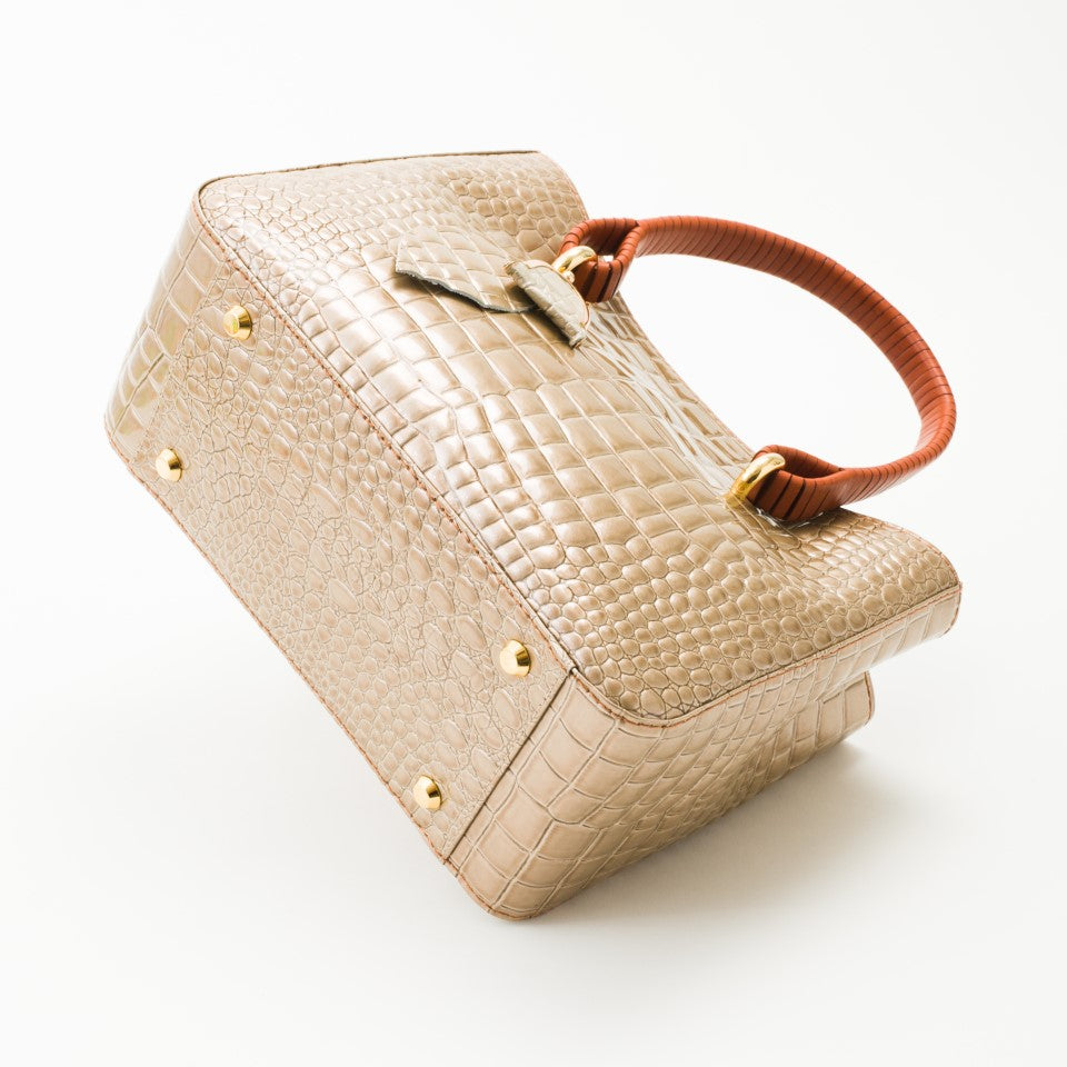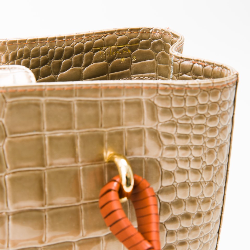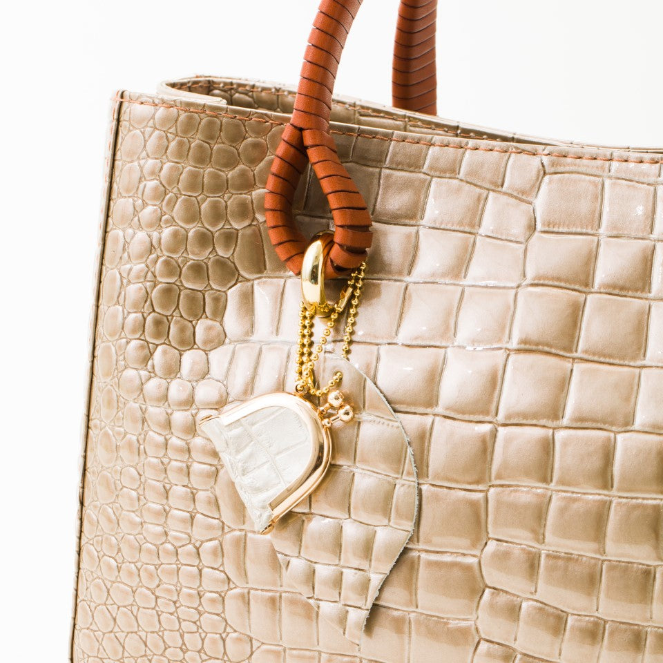 創業から55年以上バッグのアップデートを繰り返してきた鎌倉高野を象徴するアイテムで、おでかけやイベント、通勤で持つ方をエレガントに彩ります。フォーマルバッグを作成する職人の技術から生まれるシンプルながらふっくらと可愛らしいシルエット。贅沢で存在感のある持ち手は、ヌメ革を細く裁断し、一つ一丁寧に巻きあげています。ゴージャスな金具、持ち手と同じ色のステッチなど細かい部分まで作りこみました。意外と収納にも優れており、ファスナー付きの仕切りと携帯・小物仕切りで大事な小物、すぐ取り出したいものを分けて収納できます。大人のオシャレを楽しむ方におすすめのハンドバッグです。
