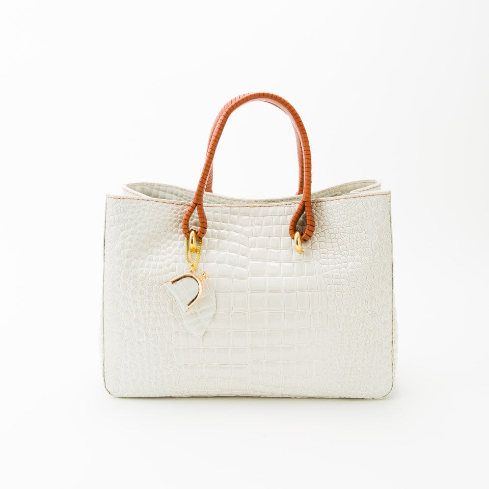 創業から55年以上バッグのアップデートを繰り返してきた鎌倉高野を象徴するアイテムで、おでかけやイベント、通勤で持つ方をエレガントに彩ります。フォーマルバッグを作成する職人の技術から生まれるシンプルながらふっくらと可愛らしいシルエット。贅沢で存在感のある持ち手は、ヌメ革を細く裁断し、一つ一丁寧に巻きあげています。ゴージャスな金具、持ち手と同じ色のステッチなど細かい部分まで作りこみました。意外と収納にも優れており、ファスナー付きの仕切りと携帯・小物仕切りで大事な小物、すぐ取り出したいものを分けて収納できます。大人のオシャレを楽しむ方におすすめのハンドバッグです。A4サイズで、小さなパソコンや書類も収まります。