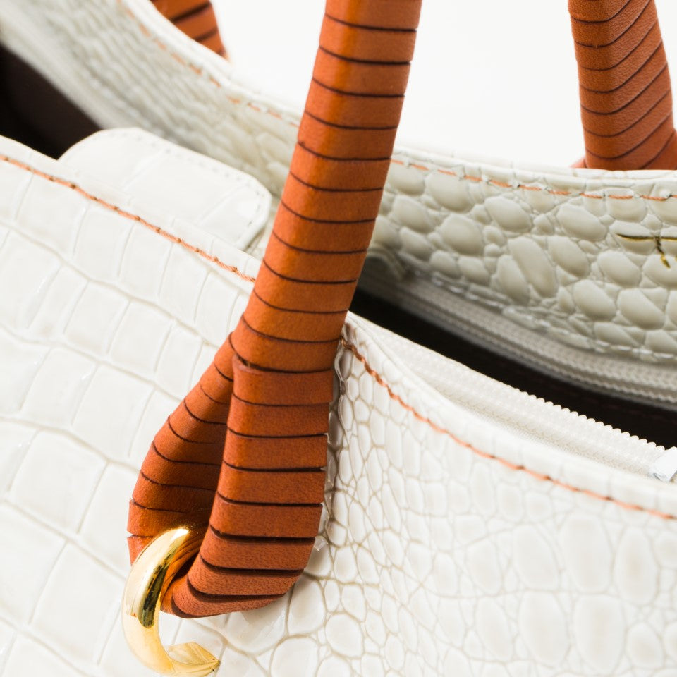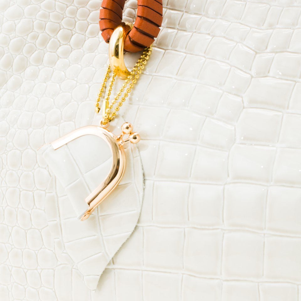 創業から55年以上バッグのアップデートを繰り返してきた鎌倉高野を象徴するアイテムで、おでかけやイベント、通勤で持つ方をエレガントに彩ります。フォーマルバッグを作成する職人の技術から生まれるシンプルながらふっくらと可愛らしいシルエット。贅沢で存在感のある持ち手は、ヌメ革を細く裁断し、一つ一丁寧に巻きあげています。ゴージャスな金具、持ち手と同じ色のステッチなど細かい部分まで作りこみました。意外と収納にも優れており、ファスナー付きの仕切りと携帯・小物仕切りで大事な小物、すぐ取り出したいものを分けて収納できます。大人のオシャレを楽しむ方におすすめのハンドバッグです。A4サイズで、小さなパソコンや書類も収まります。