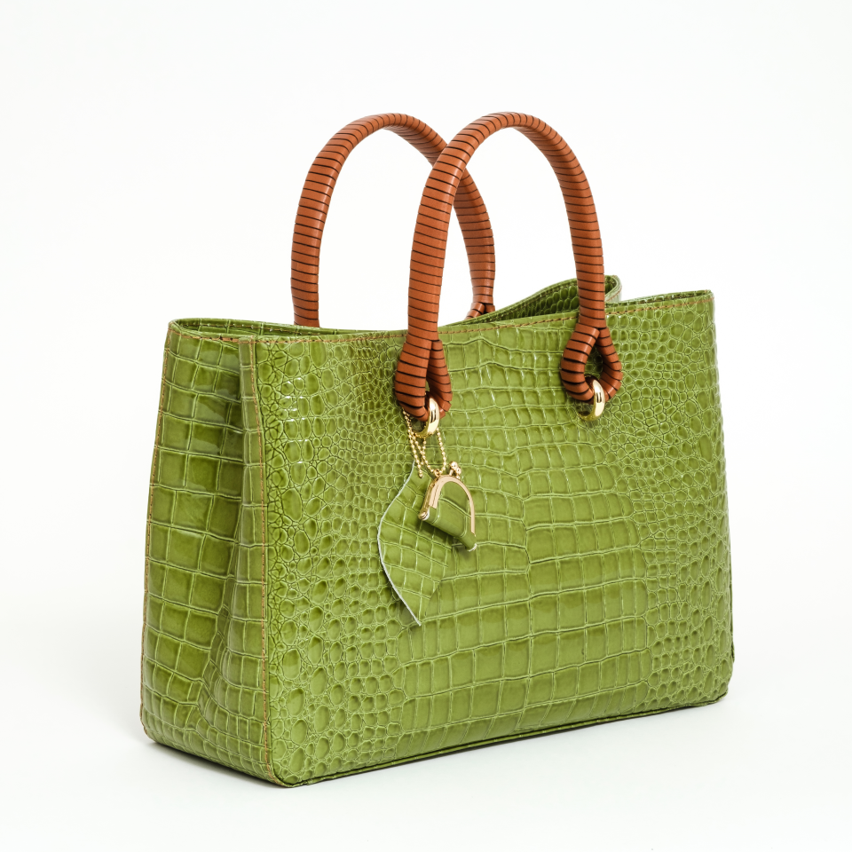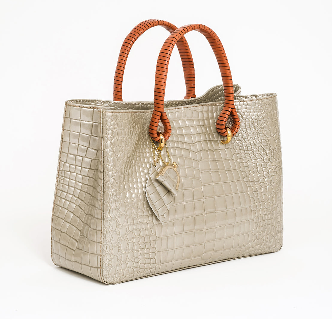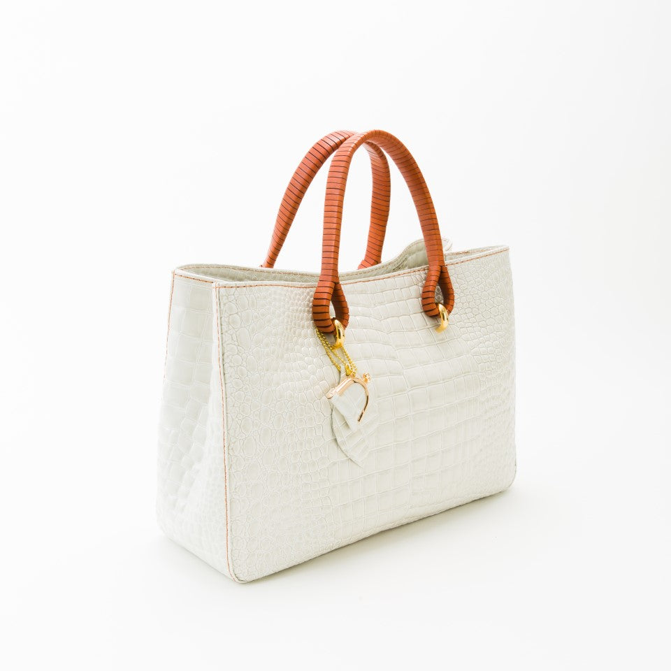 創業から55年以上バッグのアップデートを繰り返してきた鎌倉高野を象徴するアイテムで、おでかけやイベント、通勤で持つ方をエレガントに彩ります。フォーマルバッグを作成する職人の技術から生まれるシンプルながらふっくらと可愛らしいシルエット。贅沢で存在感のある持ち手は、ヌメ革を細く裁断し、一つ一丁寧に巻きあげています。ゴージャスな金具、持ち手と同じ色のステッチなど細かい部分まで作りこみました。意外と収納にも優れており、ファスナー付きの仕切りと携帯・小物仕切りで大事な小物、すぐ取り出したいものを分けて収納できます。大人のオシャレを楽しむ方におすすめのハンドバッグです。A4サイズで、小さなパソコンや書類も収まります。