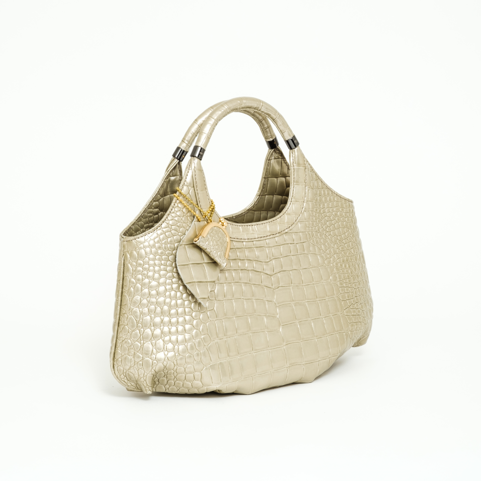 フォーマルバッグを作成する職人の技術が散りばめられた上品なハンドバッグです。貝殻のような、ふっくらとしたシルエットは、底面に12箇所の摘み縫いを施すといった通常では行わない手間を加えることで作られます。付属のクサリを付けてショルダーバッグとしてもご利用いただけます。ファスナー付きの仕切りと携帯・小物仕切りで大事な小物、すぐ取り出したいものを分けて収納できます。大人のオシャレを楽しむ方におすすめのハンドバッグです。