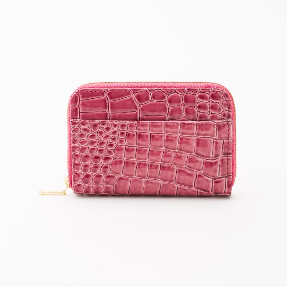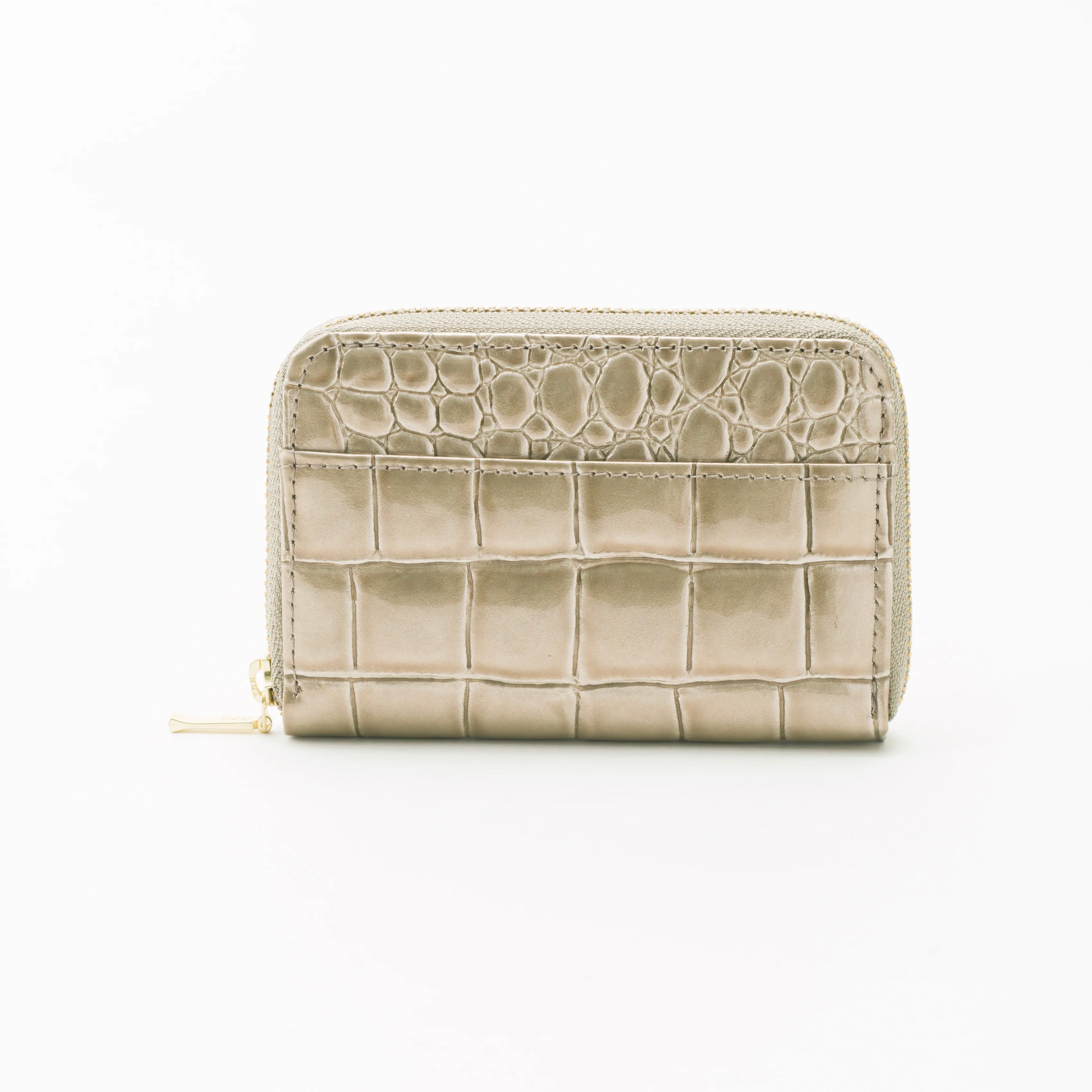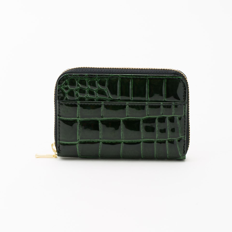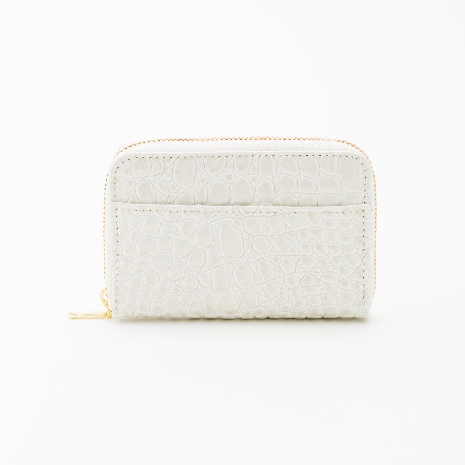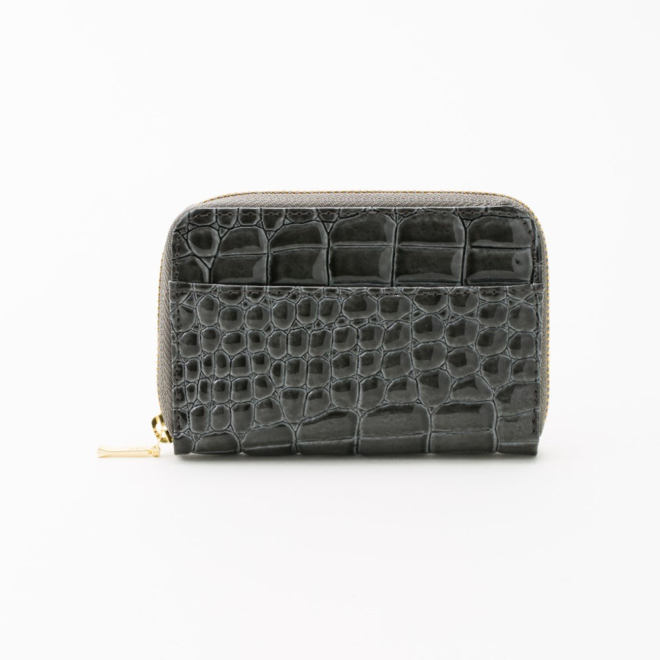 ハンドバッグに使用している革で仕上げたアイテムでプレゼントにもぴったりです。少し角を丸くした可愛らしいデザインで各所にヘリ返しを加えてディテールは繊細でエレガントに。ゴージャスなファスナーはちょっとしたアクセントに。表にカードを入れるスペースが1つ。中は5つの仕切りになっています。真ん中に小銭を入れてお財布として、カードをたっぷりと収納したりと使い方は様々です。