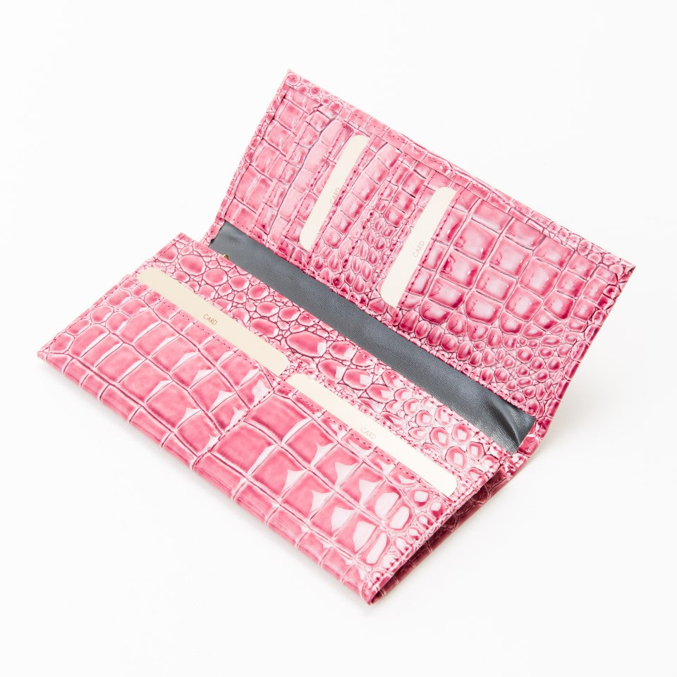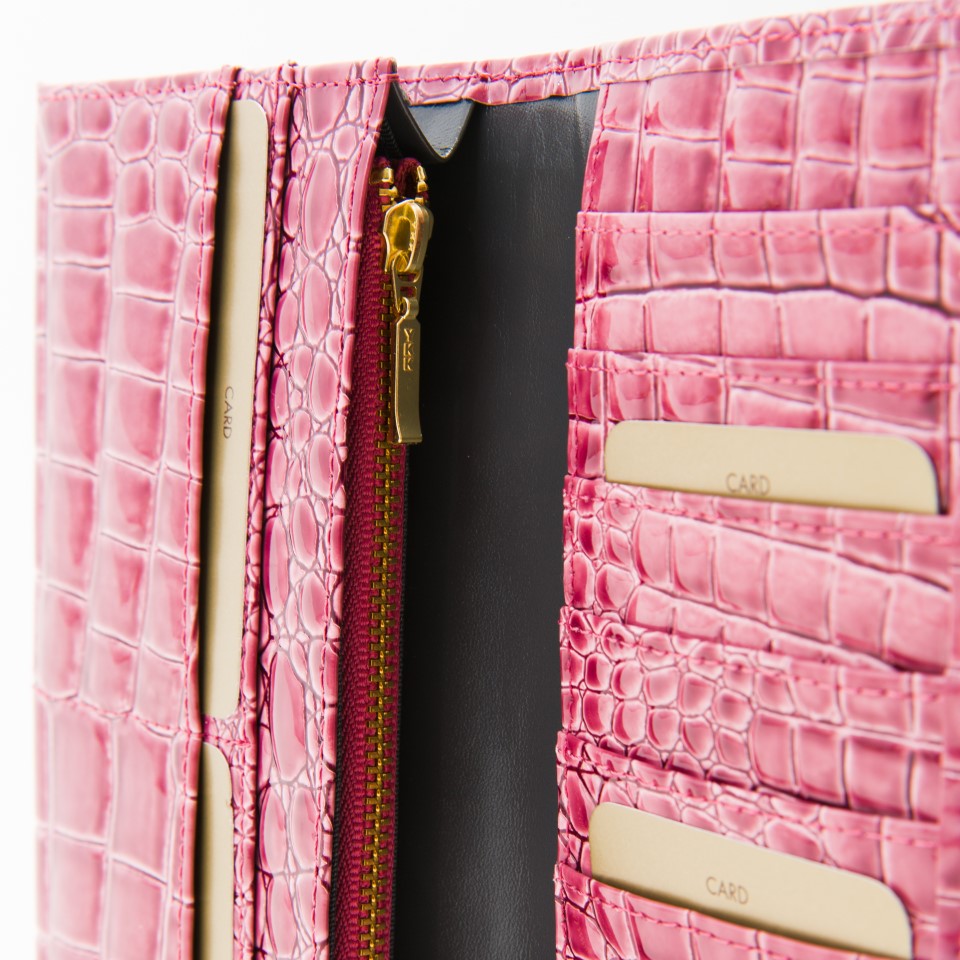 ハンドバッグに使用している革で贅沢に仕上げた財布でプレゼントにもぴったりです。スッキリと薄くスクエアなシルエットで各所にヘリ返しを加えることでディテールは繊細でエレガントに。ゴージャスなファスナーはちょっとしたアクセントに。小銭入れ、収納スペースが4ヶ所。カードを10枚ほど収納できます。