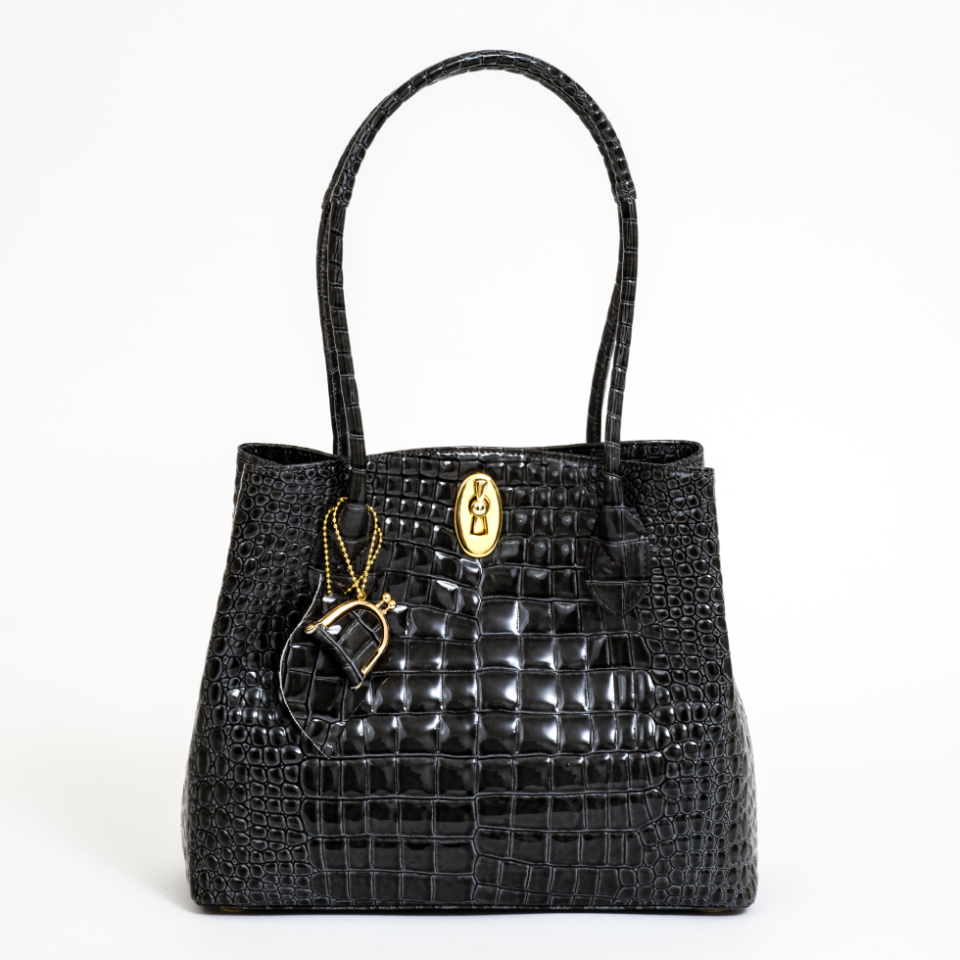 ゴージャスに大人のオシャレを楽しむ方におすすめのハンドバッグです。エレガントな持ち手とゴージャスな金具がアクセントに。職人の手によってエレガントな曲線に作りこまれたボディは全ての箇所にヘリ返しを施しており、驚くほどの軽さとソフトな手触りです。持ち手は、肩がけが出来るように長めにしています。ファスナー付きの仕切りと携帯・小物仕切りで大事な小物、すぐ取り出したいものを分けて収納できます。大人のオシャレを楽しむ方におすすめのハンドバッグです。