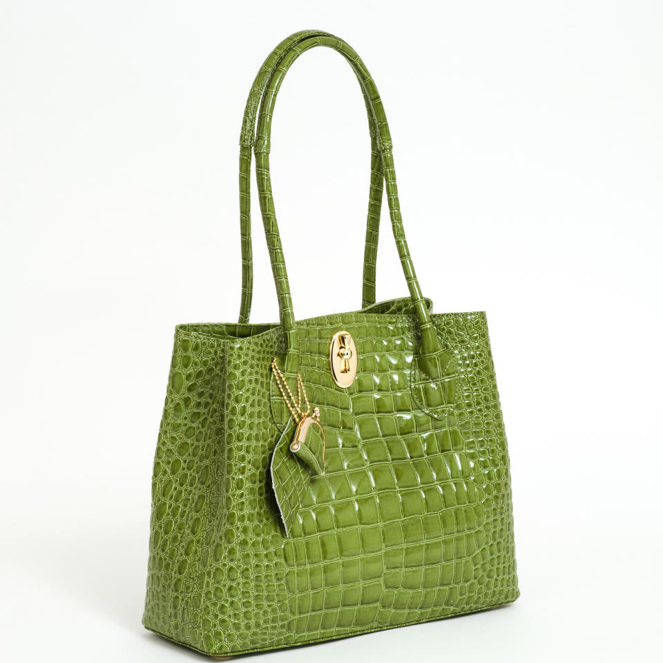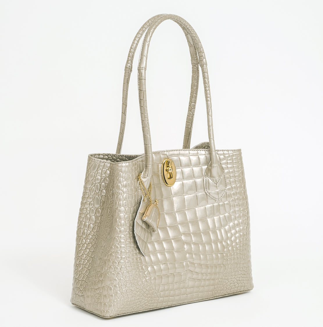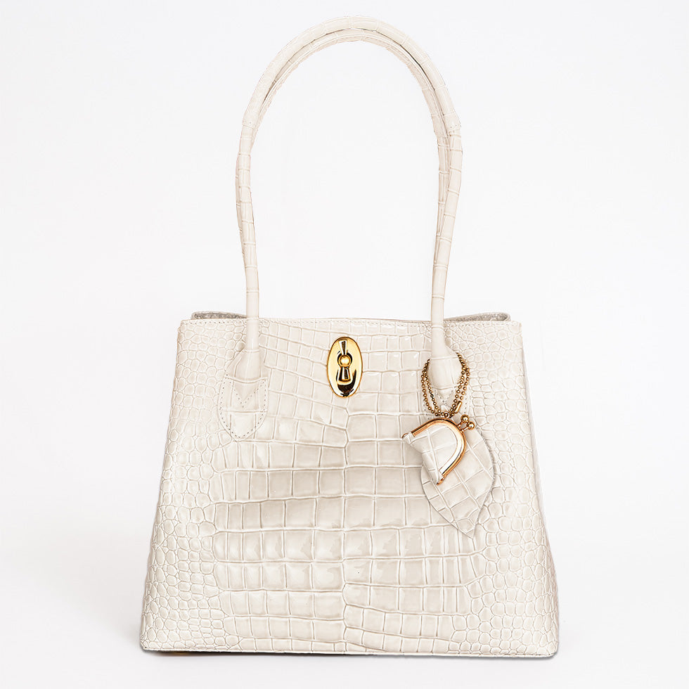 ゴージャスに大人のオシャレを楽しむ方におすすめのハンドバッグです。エレガントな持ち手とゴージャスな金具がアクセントに。職人の手によってエレガントな曲線に作りこまれたボディは全ての箇所にヘリ返しを施しており、驚くほどの軽さとソフトな手触りです。持ち手は、肩がけが出来るように長めにしています。ファスナー付きの仕切りと携帯・小物仕切りで大事な小物、すぐ取り出したいものを分けて収納できます。大人のオシャレを楽しむ方におすすめのハンドバッグです。