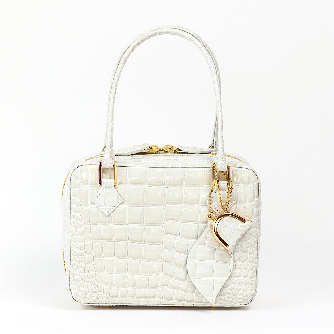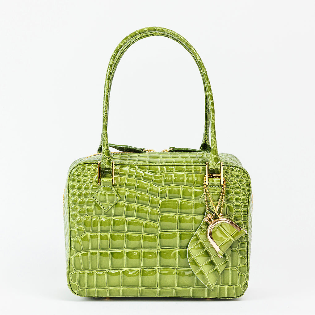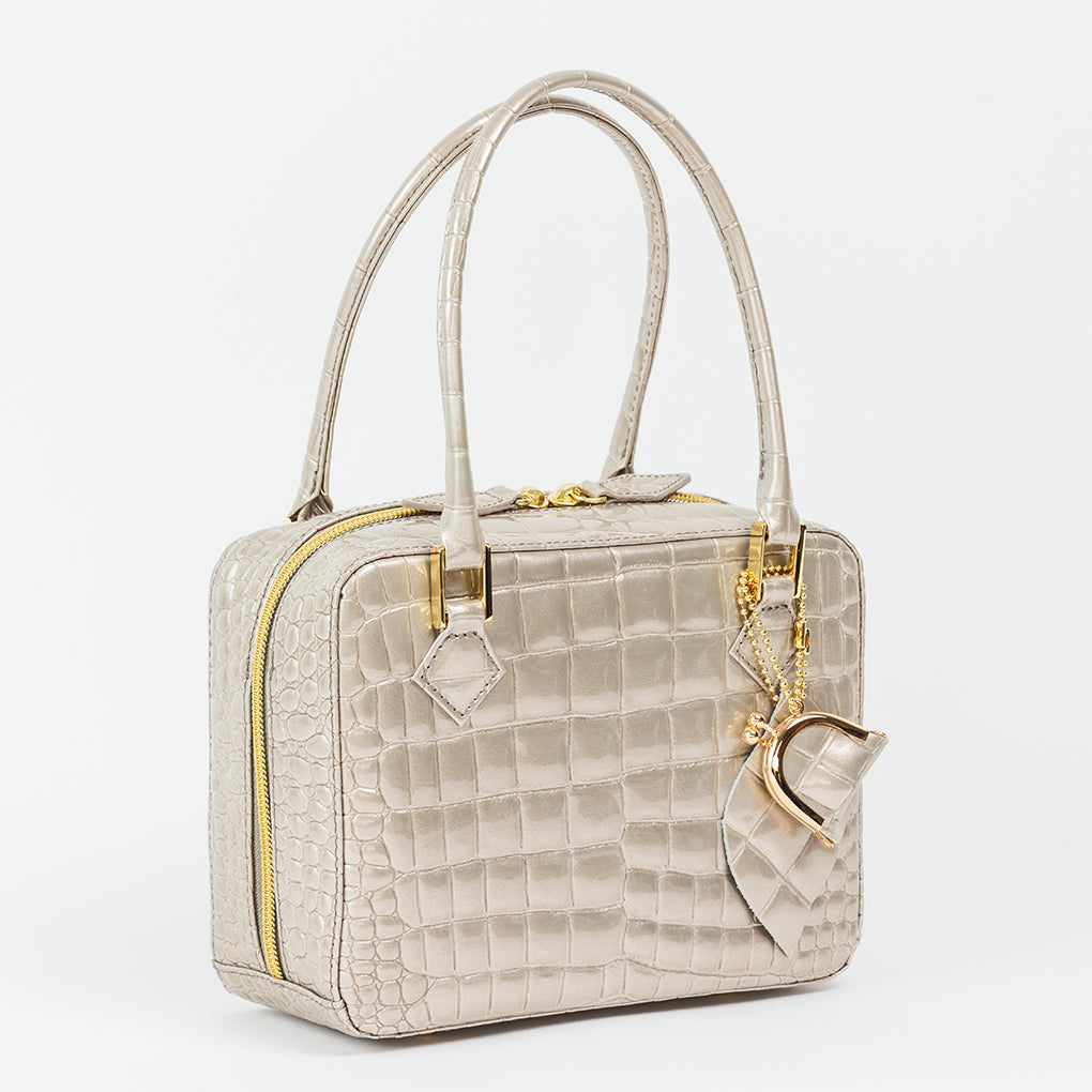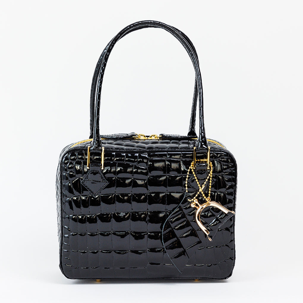 華奢な持ち手、艶やかな存在感がポイントのミニバッグです。
