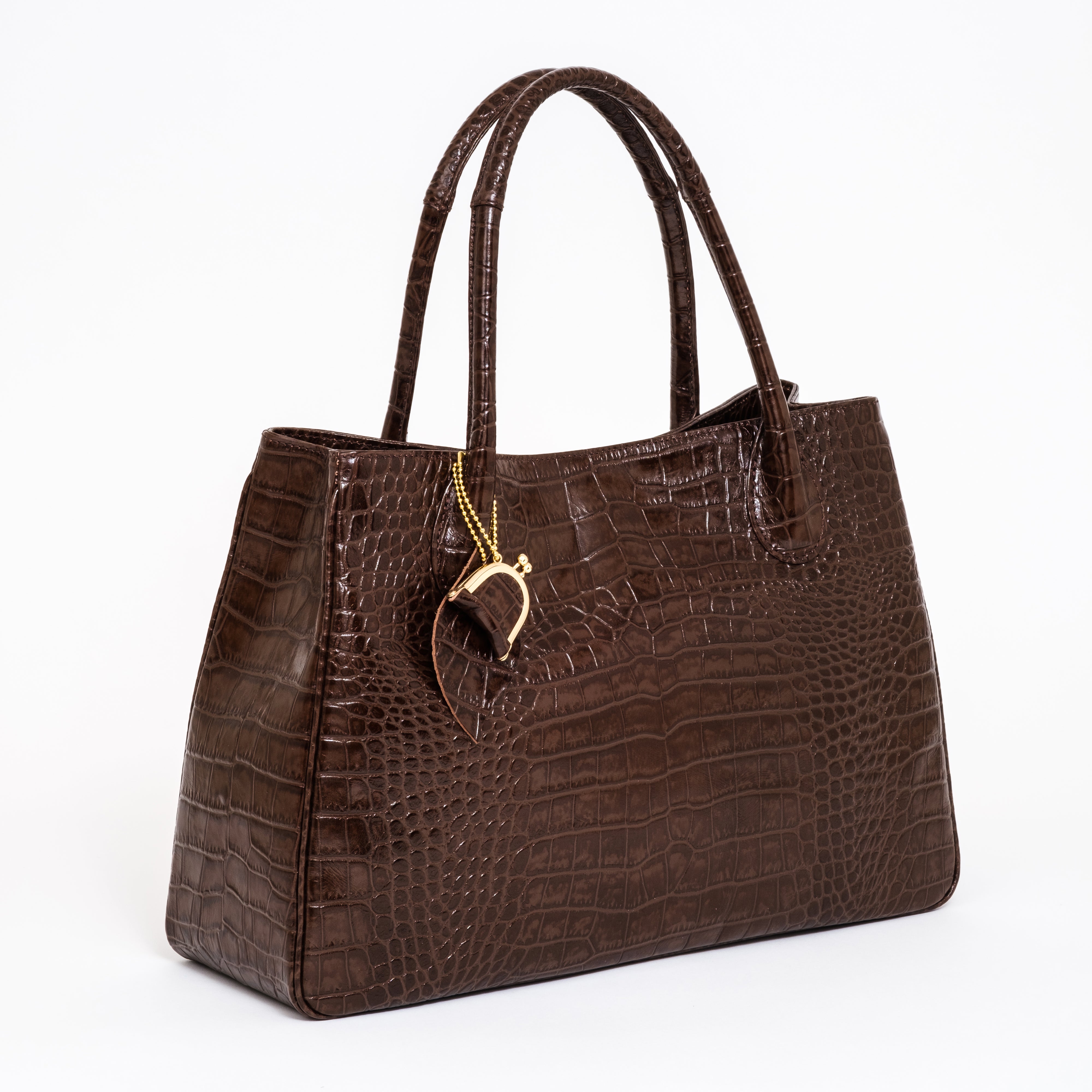 牛革ポロサススモールクロコの型押し 上品なアンチック仕上げ。最上級のマットレザーです。 肉厚な革にリアルクロコの型をギュッと押し、しっかりとした凹凸を出しています。 最大のポイントは職人さんによる「頭ハリ」という手塗りの作業で、艶のあるアンティーク風のカラーが生まれます。  経年変化に強い特殊な加工を施しているため、傷に強く、はっ水性があり、日常使いにも適しています。