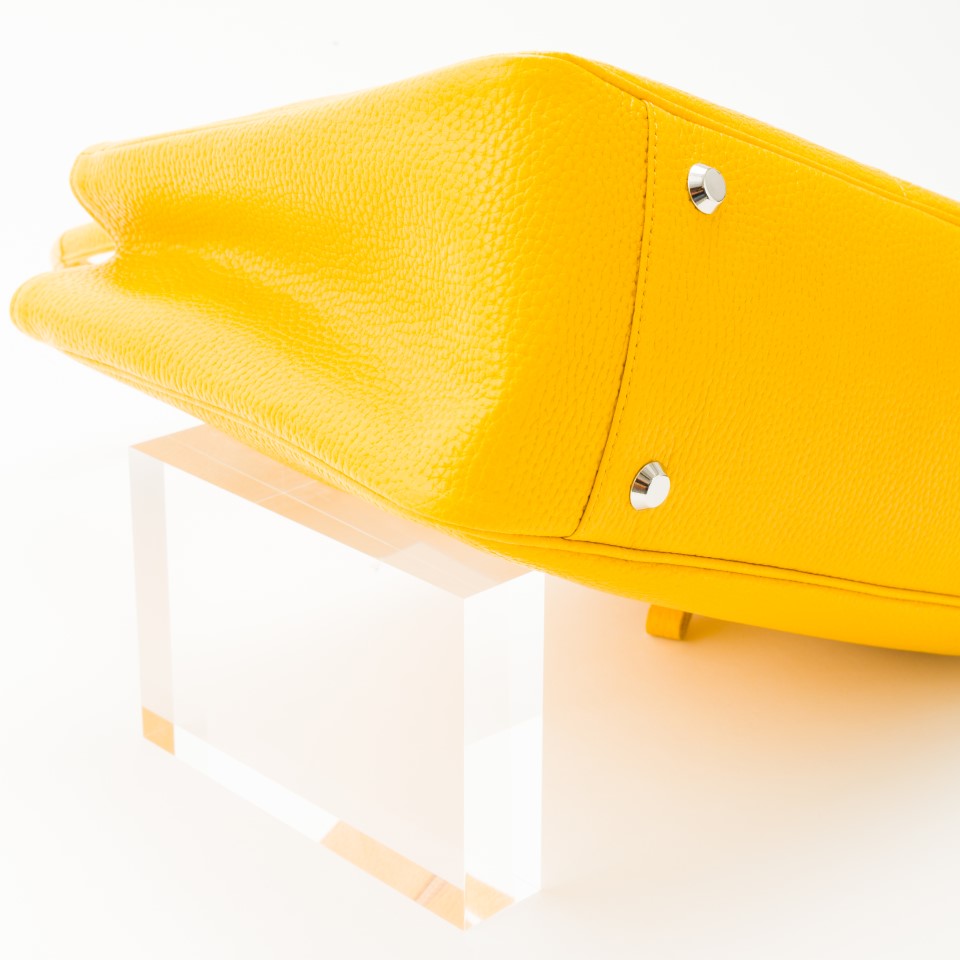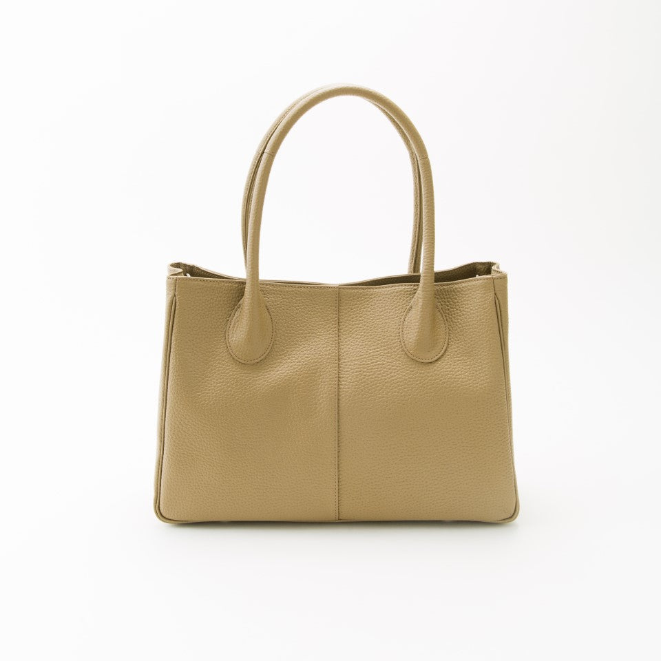 創業から55年以上アップデートを繰り返し、累計15,000個以上販売されてきた人気アイテムです。バッグを持つ方をエレガントに彩り、サポートするため多くの工夫を施して参りました。各所に丁寧に漉いた革の断面を折りたたんで縫い込む、ヘリ返しの技術を用い、軽さと耐久性を両立しソフトな手触りを実現。マチを独立して裁断・縫製することでお荷物を入れてもシルエットは保たれ、型崩れしません。口元に引っ掛け金具は、重いものを入れても開かず、倒してしまっても安心です。中仕切りは、取り外してクラッチバッグとして。大きな荷物などを入れる際には端に付け替えられます。オン・オフどの様なシーンでもご利用いただけるトートバッグです。