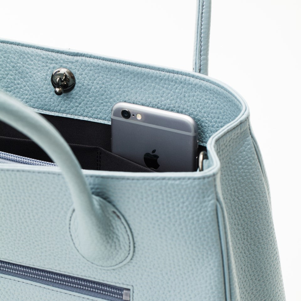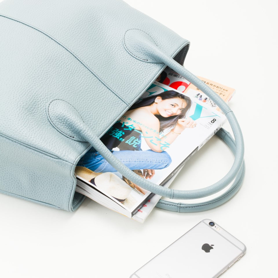 創業から55年以上アップデートを繰り返し、累計15,000個以上販売されてきた人気アイテムです。バッグを持つ方をエレガントに彩り、サポートするため多くの工夫を施して参りました。各所に丁寧に漉いた革の断面を折りたたんで縫い込む、ヘリ返しの技術を用い、軽さと耐久性を両立しソフトな手触りを実現。マチを独立して裁断・縫製することでお荷物を入れてもシルエットは保たれ、型崩れしません。口元に引っ掛け金具は、重いものを入れても開かず、倒してしまっても安心です。中仕切りは、取り外してクラッチバッグとして。大きな荷物などを入れる際には端に付け替えられます。オン・オフどの様なシーンでもご利用いただけるトートバッグです。A4サイズで、小さなパソコンや書類も収まります。