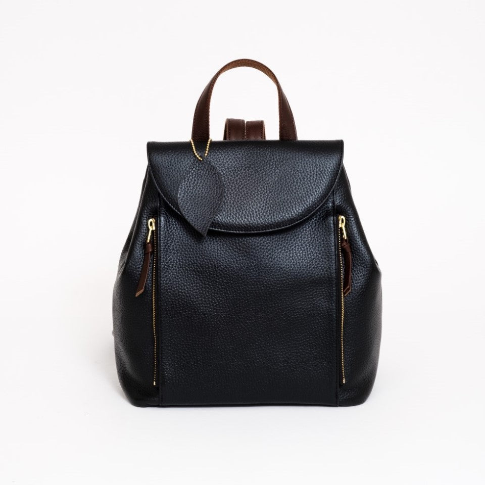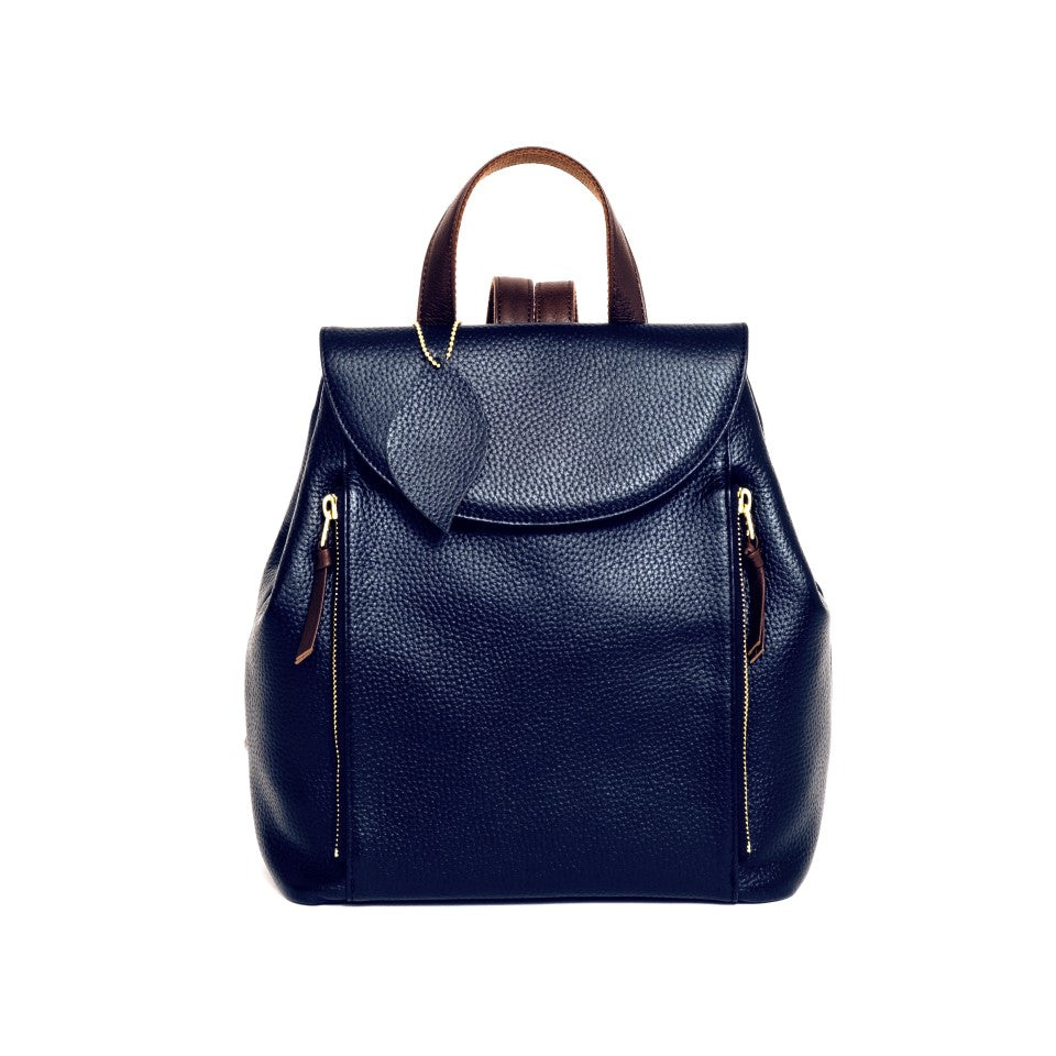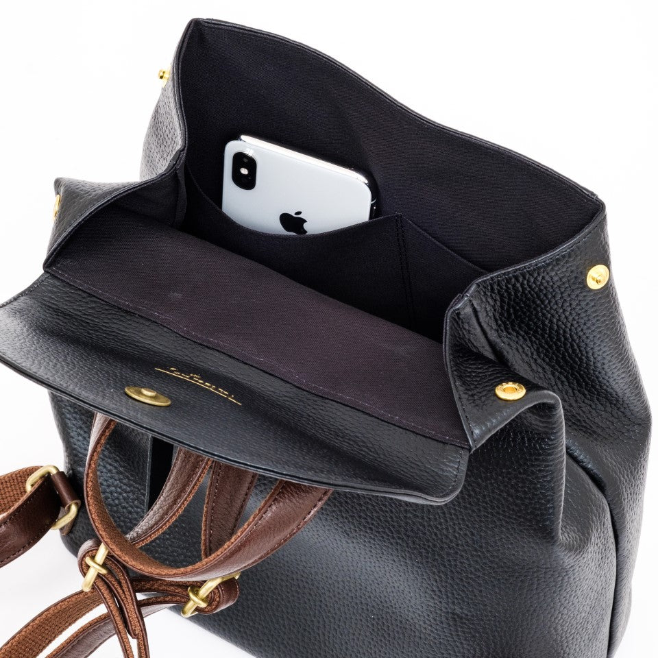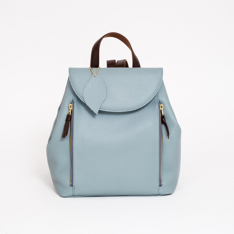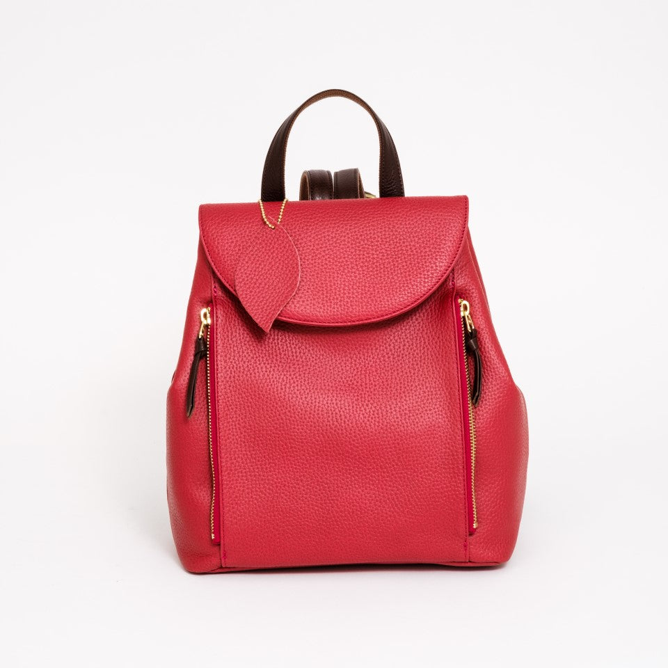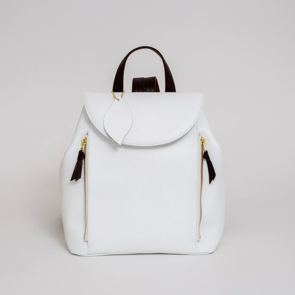 可愛らしいカジュアルな見た目の中に職人の技術とこだわりが込められています。箇所にヘリ返しを施したボディは驚くほどの軽さとソフトな手触りです。カバーはマグネット式、前部のダブルファスナーのポケットはそれぞれ別に収納いただけます。サイドのホックを外すと、収納力がもう一段アップ。ショルダーの取り付けは背中とリュックの空間が空かないようクロスさせ、ショルダー裏をコットンにしていますので、滑らず疲れを軽減します。大人可愛いバックパックでお出かけをお楽しみください。