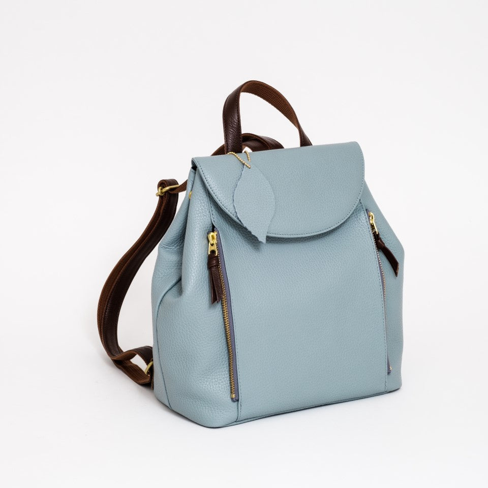可愛らしいカジュアルな見た目の中に職人の技術とこだわりが込められています。箇所にヘリ返しを施したボディは驚くほどの軽さとソフトな手触りです。カバーはマグネット式、前部のダブルファスナーのポケットはそれぞれ別に収納いただけます。サイドのホックを外すと、収納力がもう一段アップ。ショルダーの取り付けは背中とリュックの空間が空かないようクロスさせ、ショルダー裏をコットンにしていますので、滑らず疲れを軽減します。大人可愛いバックパックでお出かけをお楽しみください。