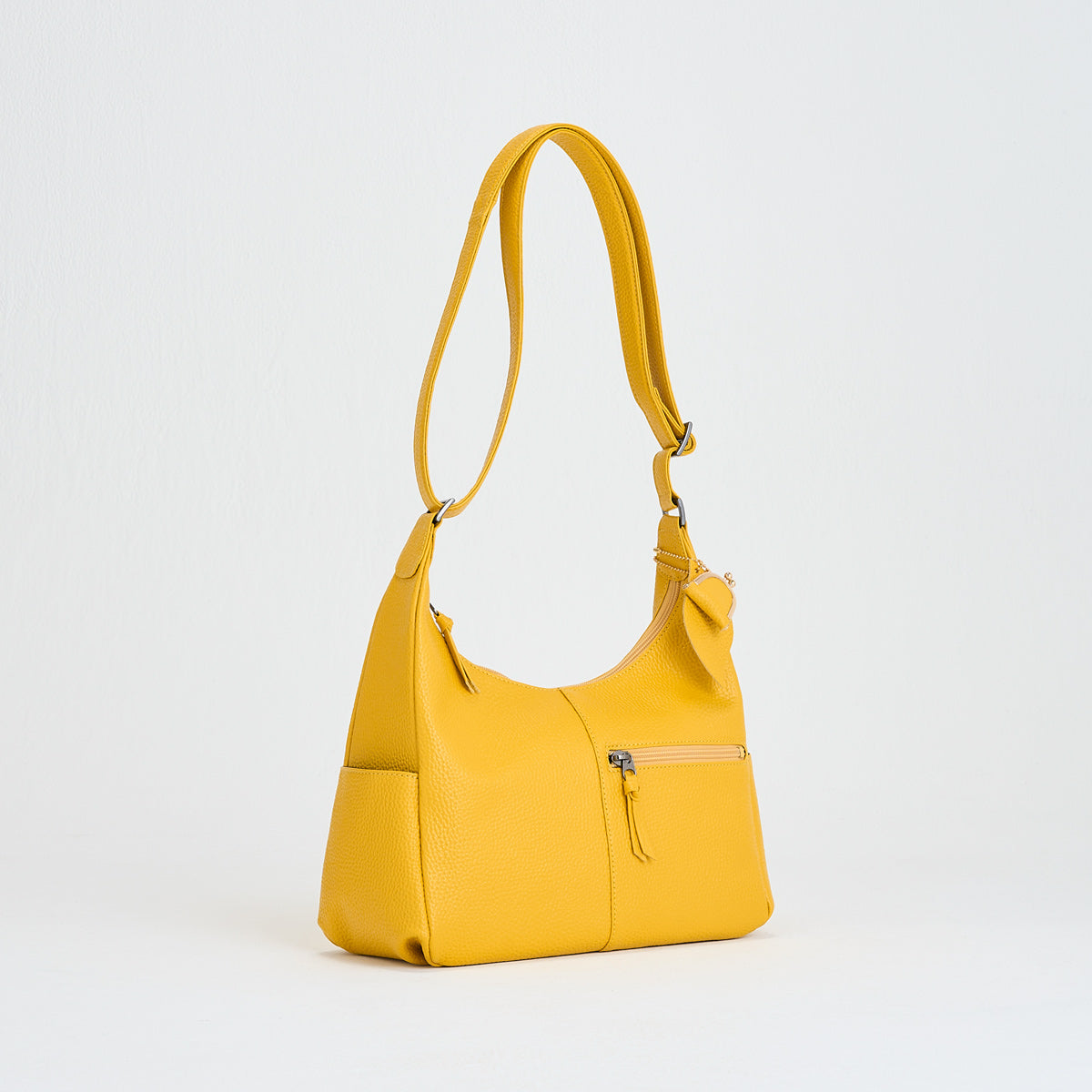 底の四隅はたっぷりマチ巾を取って摘み縫いしているので、十分な収納力がありながら横からのシルエットも柔らかく可愛らしい印象に。調整可能なショルダー紐は、巾2.5センチで肩への負担も軽減しながら、斜め掛けをしたときに身体に馴染む設計になっております。機能のこだわりとしては沢山のポケット。フロント部分には、ワンポイントとして12センチの前ファスナー付き、背中側には16センチのファスナー付き、内側にはオープンポケット2ヶ所、ファスナー付きポケットが1ヶ所に。両サイドにもスマホが入るくらいの大きさのオープンポケットがついています。