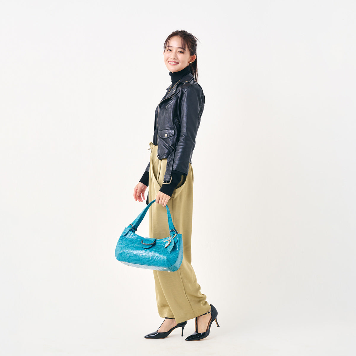 持つ方をエレガントに彩ることを極めたハンドバッグです。曲線と曲面の連続が生み出すシルエットは他には無い存在感で、持つ方をより一層エレガントにスラッとお見せします。革の裁断から計算され、ヘリ返し、摘み縫いといった職人の技術が込められたレイクバッグは使い勝手も優れ、細く持ちやすい持ち手や折り畳み傘なども収まる収納でオン・オフどのようなシーンでもご利用いただけます。大人のオシャレを楽しむ方におすすめのハンドバッグです。