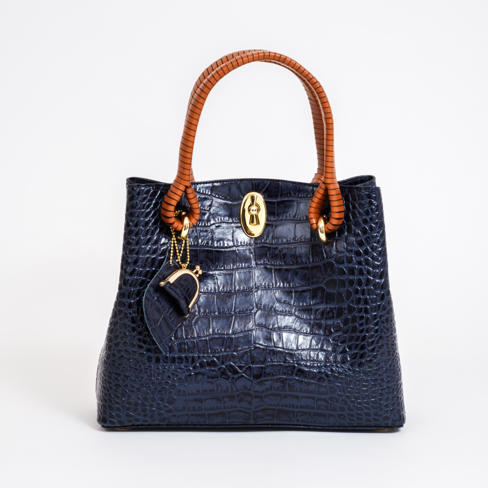鎌倉高野の巻き手バッグ2 マットクロコ型押し ネイビーは、日本の職人による手作り。