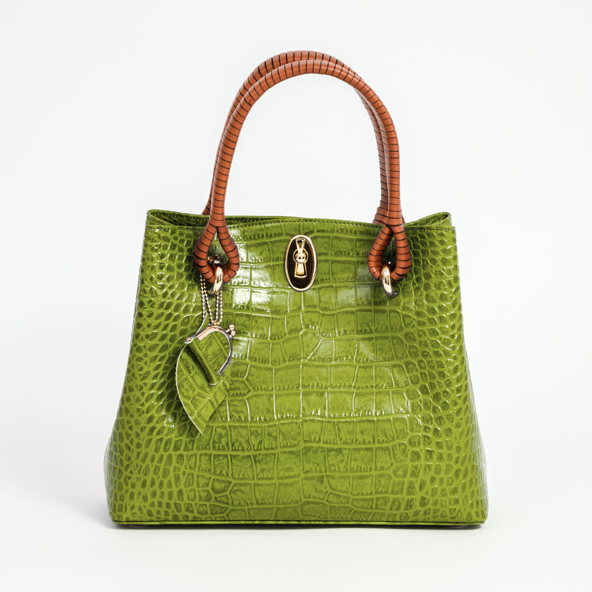 鎌倉高野の巻き手バッグ2 マットクロコ型押し 若草は、日本の職人による手作り。