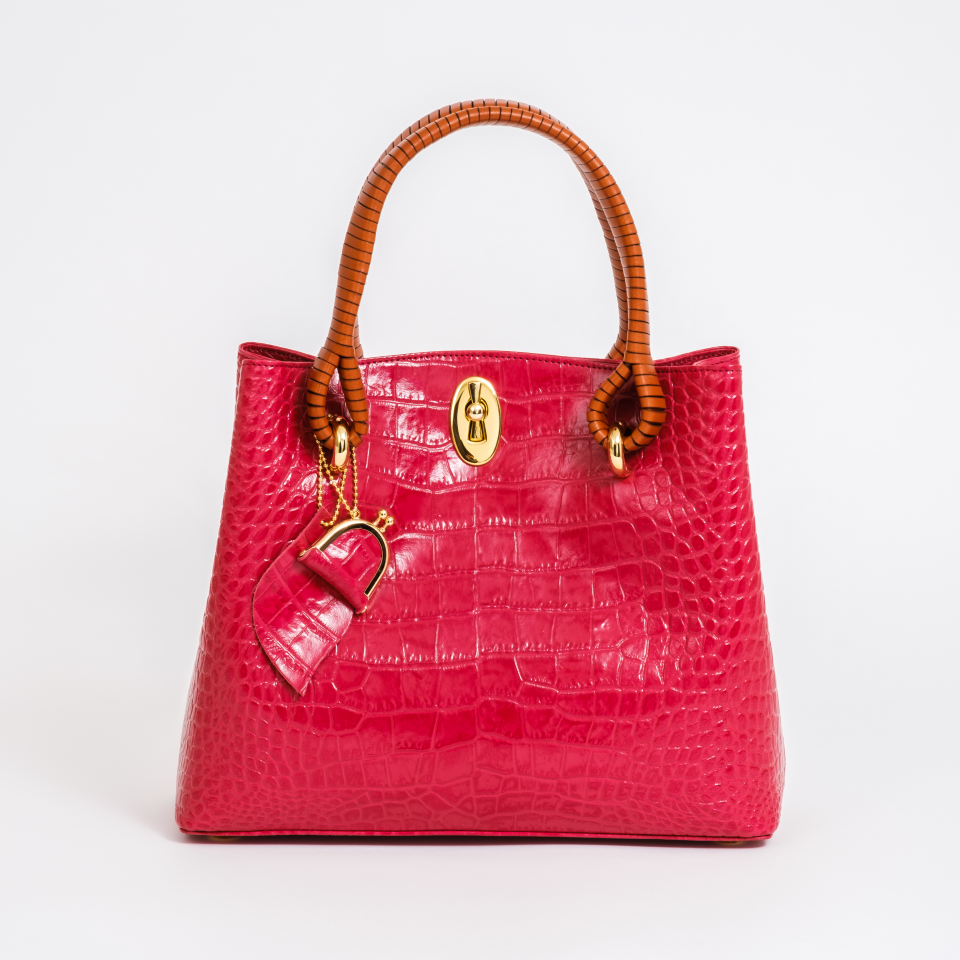 鎌倉高野の巻き手バッグ2 マットクロコ型押し チェリーレッドは、日本の職人による手作り。