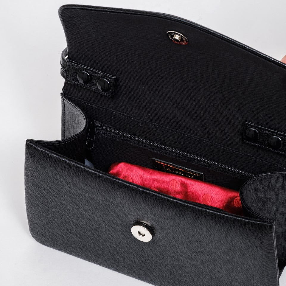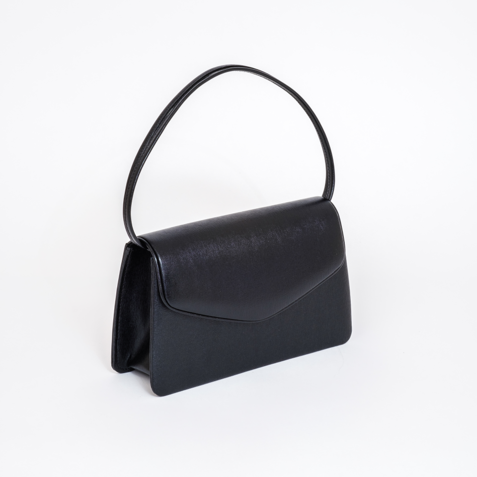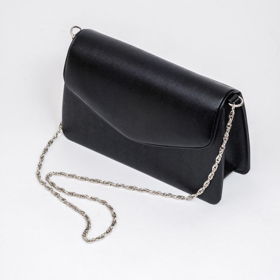 究極にシンプルなフォルムだからこそ素材と仕立ての良さが際立つエレガントなフォーマルバッグです。高級感が抜群で張りと光沢があるガラス革を使用しています。硬いガラス革や芯材といった素材は熟練技術が要求され、他ではめったにお目にかかれないガラス革のバッグは鎌倉高野の真骨彫と言えます。可愛らしい2本手がワンポイントに。付属のクサリでショルダーバッグとしてもご利用できますので、様々なシーンで活躍します。