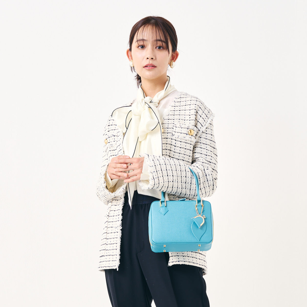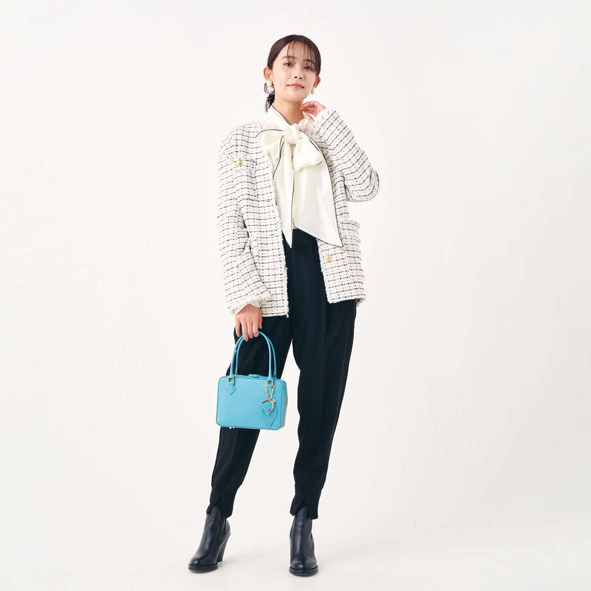 華奢な持ち手、艶やかな存在感がポイントのミニバッグです。