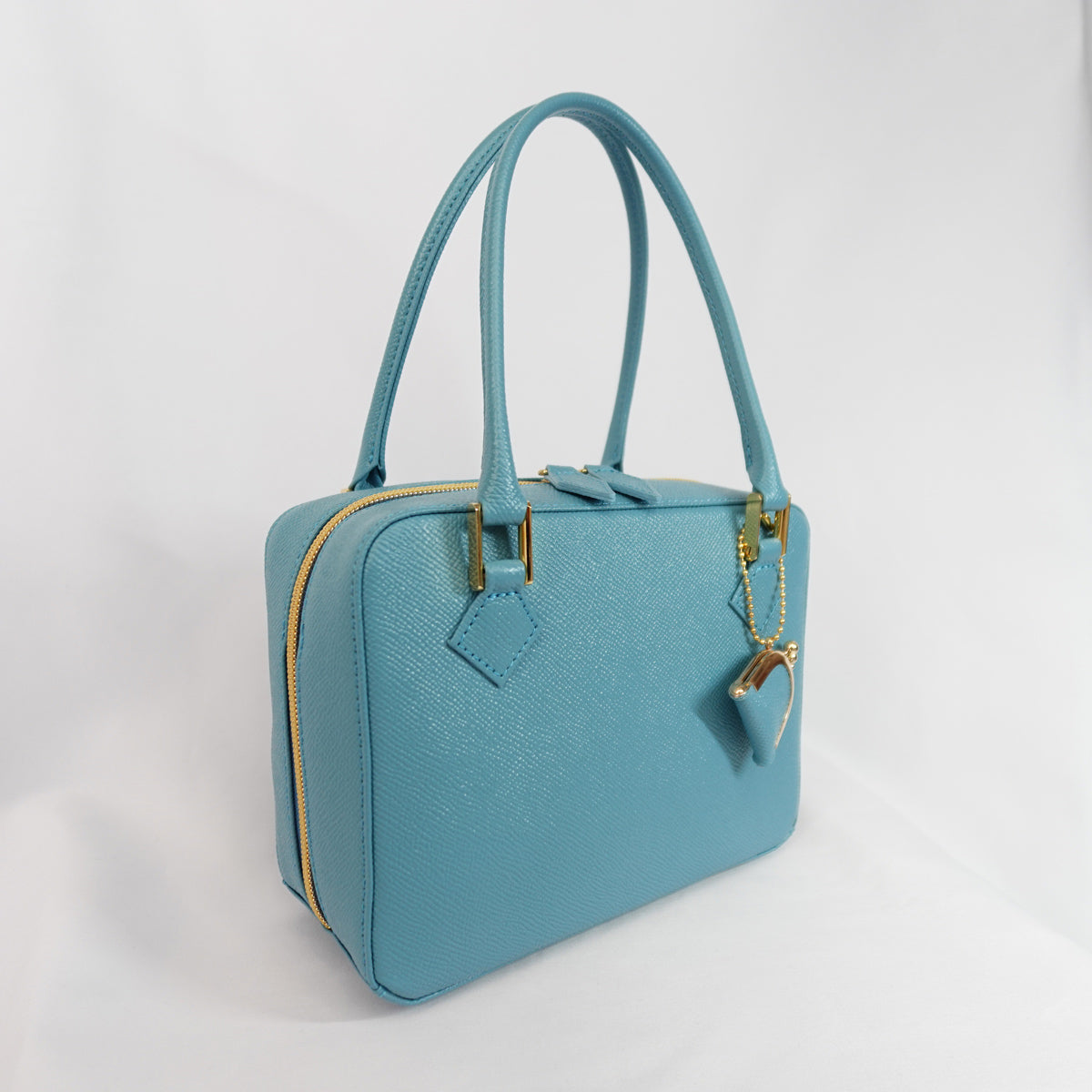牛革に細かい型押し加工を施した素材。 明るい発色と柔らかい風合いに高級感があり、どのようなシーンでも上品な印象に。 ハリ感がありかための手触りのため、見た目の美しさだけでなく型崩れしにくく安心して日常使いできる機能性も兼ね備えています。